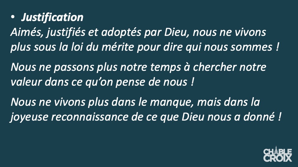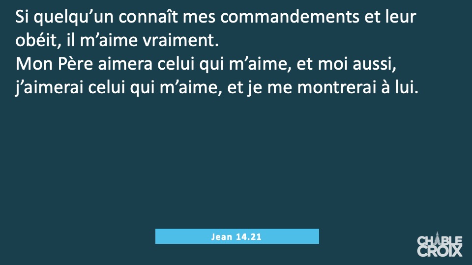 C'est ainsi que nous commençons à expérimenter la manifestation de Jésus au travers le fruit de l'Esprit, c'est l'amour, la joie, la paix, la patience, l'amabilité, la bonté, la fidélité, la douceur, la maîtrise de soi. Galates 5.22